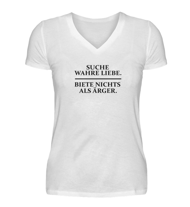 Suche Wahre Liebe Biete Nur Arger V Neck Damenshirt Shirtee De T Shirt Druck Und T Shirts Bedrucken Bei Shirtee Schnelle Lieferung Zeig Was Deine Meinung Ist Mit Shirtee De