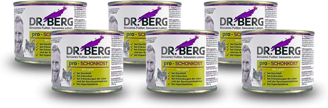 Dr Berg Pro Schonkost Nassfutter Fur Katzen Diatfutter Bei Magen Darm Problemen Durchfall 6 X 190 G Amazon De Haustier