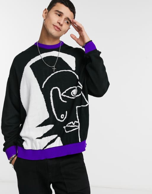 Evesham Nj Design Oversize Strickpullover Mit Handzeichnungs Design In Schwarz Evesham Nj