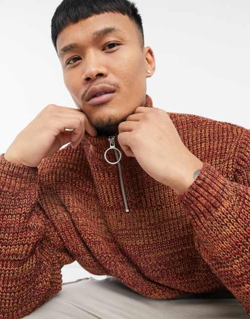 Evesham Nj Design Oversize Strickpullover Mit Kurzem Reissverschluss In Lila Mit Twist Effekt Evesham Nj