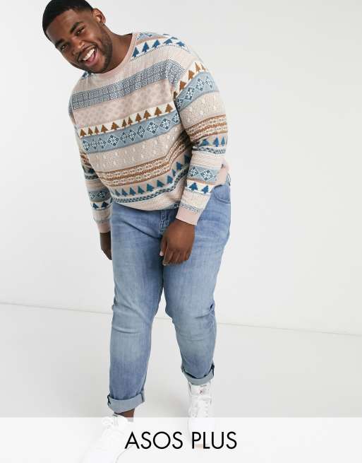 Evesham Nj Design Plus Oversize Strickpullover Mit Norwegermuster In Lila Evesham Nj