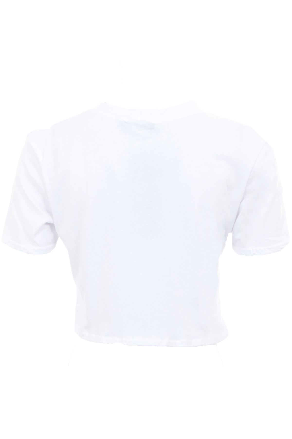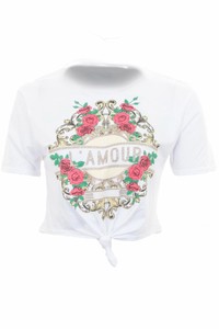 Damen Kurzarm L Amour Paris Rose Glitzer Knoten Vorne Bauchfreies Top T Shirt Ebay