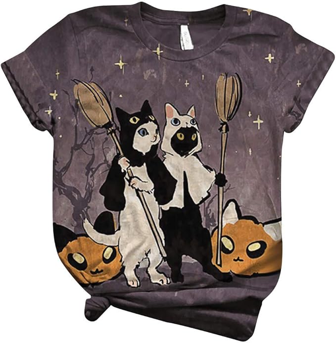 Cute Cat Printed Casual Crew Neck Shirts Tops In Crew Neck Shirt Cat Tee Shirts T Shirt Painting