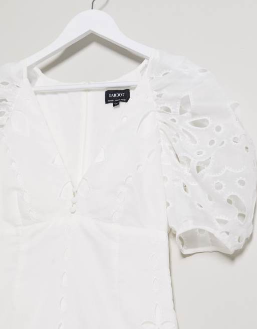 Bardot Weisses Kleid Mit Schwingendem Saum Und Lochmuster Asos