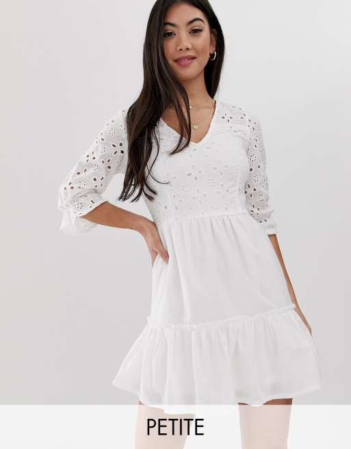 Parisian Petite Weisses Kleid Mit Wickeldesign Vorn Und Lochstickerei Asos