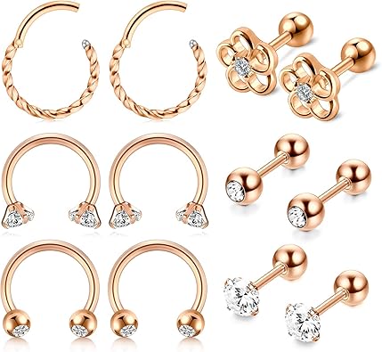 Mayhoop Tragus Piercing Ohr Helix Knorpel Cartilage Piercing Chirurgenstahl 16g Rose Gold Ohrstecker Ohrring Hufeisen Piercing 12er Amazon De Schmuck