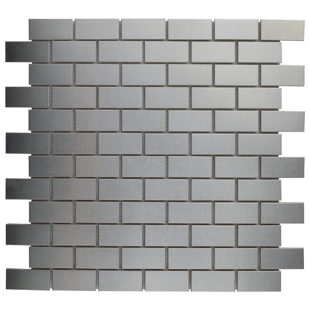 Merola Tile Alloy Subway 11 3 4 In X 11 3 4 In X 8 Mm Stainless Steel Metal Over Porcelain Mosaic Tile Mdmsssw The Home Depot