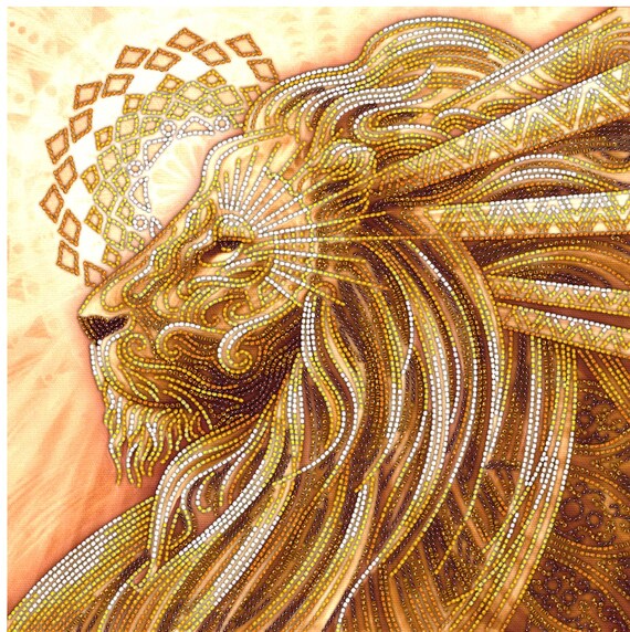 Regal Lion Diy Beaded Embroidery Kit Embroidery Pattern Etsy