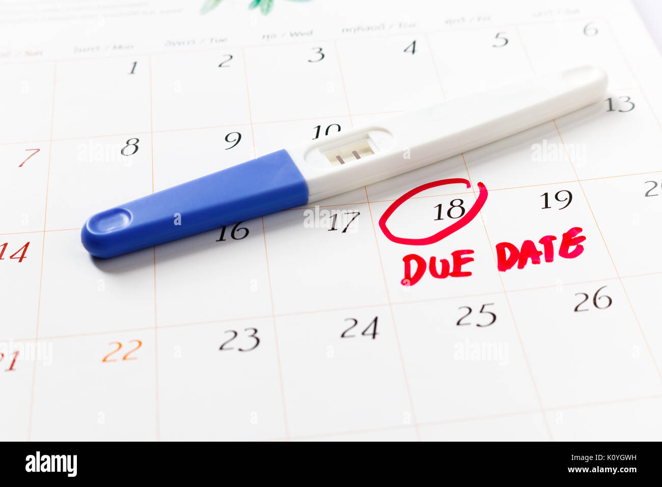 Schwangerschaftstest Positiv Auf Kalender Hintergrund Kreis 18 Soft Focus Stockfotografie Alamy