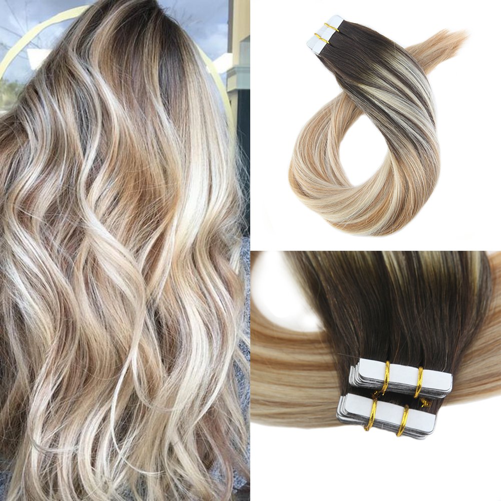 Moresoo Remy Human Hair Extensions Balayage Tape In Real Human Hair Dark Brown 2 To Blonde 27 Mixed 613 Bleach Blonde Seamless Skin Weft Extensions 22 Inch Pcs 50g Buy Online