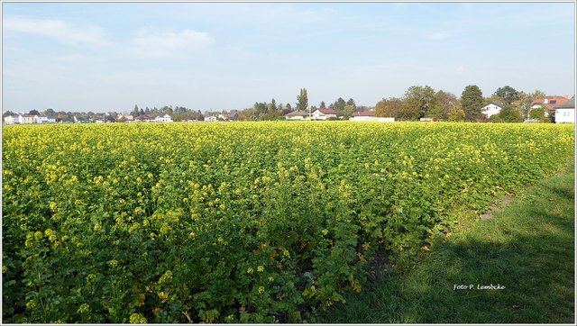 Oktober 18 um 1800 Uhr Im Riller Feld blüht ein Etwas versteckt im Riller Feld, draußen auf dem Lande zwischen der Xantener Straße und dem Salzbergwerk Esco zeigt ein hierzulande. Dieser Körnerraps ist im Moment ebenfalls auf den Feldern zu sehen Aber nicht leuchtendgelb, sondern noch als Pflanze mit mattgrünen Blättern „Hier handelt es sich um eine Hauptfrucht, die eine ganze Vegetationsperiode auf dem Feld ist. Der Raps blüht im Frühjahr von April bis Mai Die Pflanze die du jetzt siehst, ist der Senf Er blüht im Herbst und wird auch Ackersenf genannt Der Senf wird von den Landwirten als Zwischenfrucht ausgesät Er bleibt meist bis zum Frühjahr stehen und wird schließlich als Gründünger untergepflügt.
