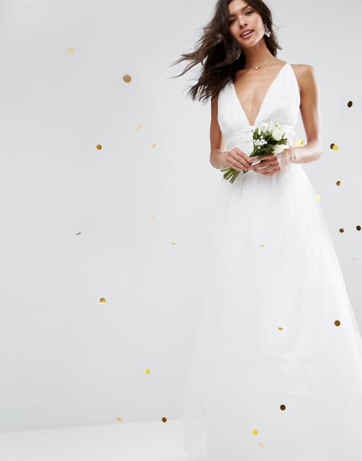 Asos Edition Sophia Brautkleid Mit Tiefem Ausschnitt Spitze Und Plissiertem Rock Asos
