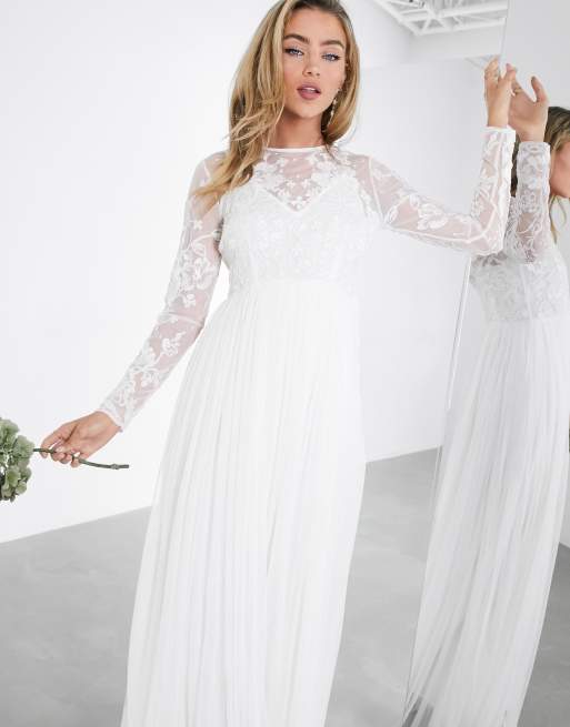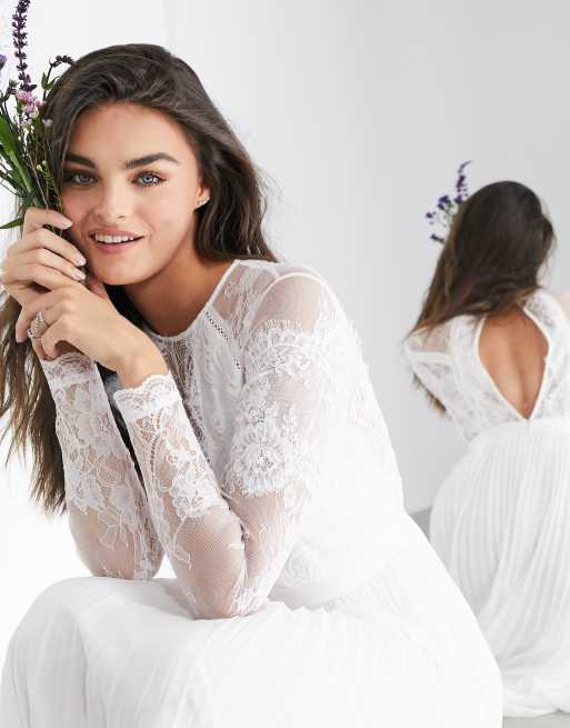 Asos Edition Iris Langarmliges Maxi Hochzeitskleid Mit Spitze Am Oberteil Und Plissiertem Rock Asos