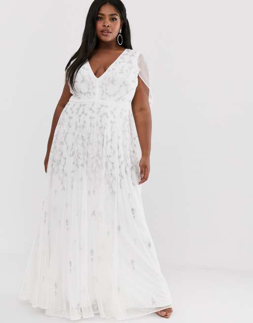 Asos Edition Curve Hochzeitskleid Mit Pailletten Und Kimono Armeln Asos