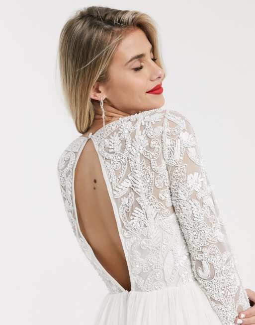 Asos Edition Freya Besticktes Hochzeitskleid Mit Schwalbenschwanzsaum Aus Netzstoff Asos