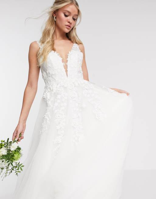 Asos Edition Isabella Brautkleid Mit Tiefem Ausschnitt Und 3d Blumenstickerei Asos