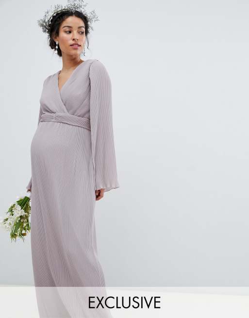 Asos Design Umstandsmode Bridesmaid Langarmliges Maxikleid Mit Geraffter Taille Und Plissiertem Rock Asos