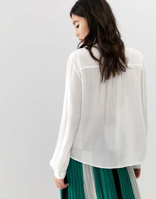 Weisse Bluse Aus Popeline Mit Ruschen Und Schleife Topshop