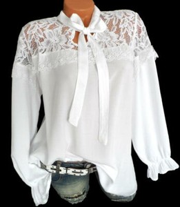 Weisse Bluse Schluppenbluse Mit Spitze Schleife Abend Business Longbluse 42 44 46 Ebay