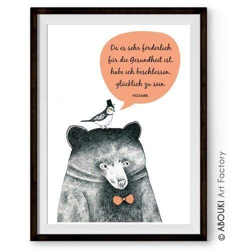 Da Es Sehr Forderlich Fur Die Gesundheit Ist Habe Ich Beschlossen Glucklich Zu Sein Abouki Kunstdruck Ungerahmt Geschenk Idee Fur Freund Freundin Sie Ihn Illustration Mit Zitat Voltaire Amazon De Handmade