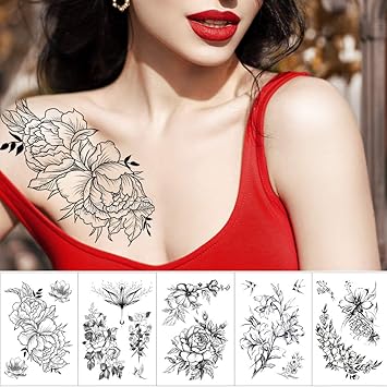 Wasserdicht Temporare Tatowierung Aufkleber Skizze Linie Pfingstrose Muster Tattoo Wassertransfer Rose Body Art Gefalschte Arm Tattoo Fur Frauen Amazon De Beauty