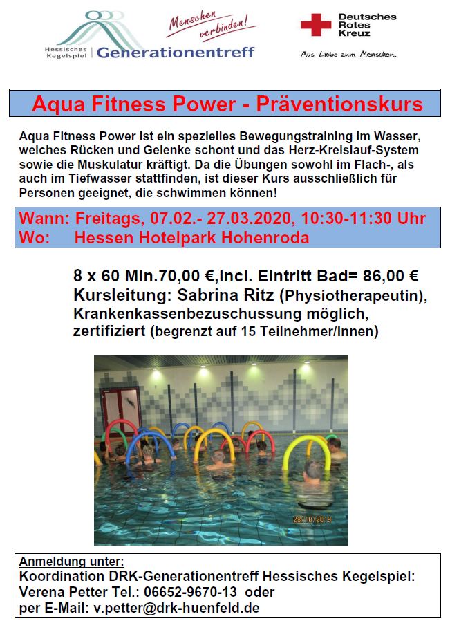 VHS Kurs Wassergymnastik Ein VHSKurs in Sachen Wassergymnastik muss sich nicht zwingend nur an Senioren richten, obgleich diese von dem schonenden Training in besonderem Maße profitieren Dies gilt allerdings auch für alle anderen, die beispielsweise gewisse Handicaps. Wassergymnastik hilft vor allem zur Vorbeugung oder Linderung von typischen “Schwangerschaftsbeschwerden” Die Schwangeren leiden häufig unter Rücken oder Nackenschmerzen, die durch gezielte Übungen im Wasser verbessert werden können Weiterhin können die Frauen von den Entspannungsübungen profitieren. In diesem Kurs bewegen wir schonend unseren Körper Ziel ist es, die Funktion der verschiedenen Gelenke zu verbessern und den Rücken zu stärken Die Übungen belasten den Körper wenig und eignen sich daher besonders für Menschen mit Gelenkproblemen oder Gelenkerkrankungen Willkommen.