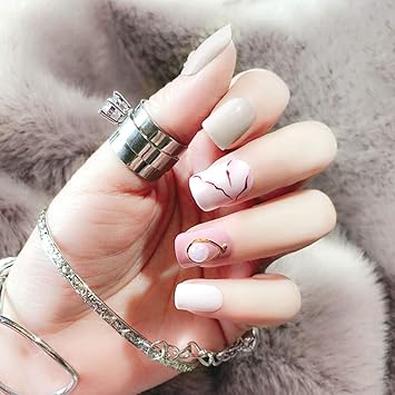 Asooll 24 Kunstliche Nagel Rosa Marmorstruktur Kurz Weisse Kunstnagel Vollstandige Abdeckung Party Acrylnagel Kunst Fur Frauen Und Madchen Amazon De Beauty