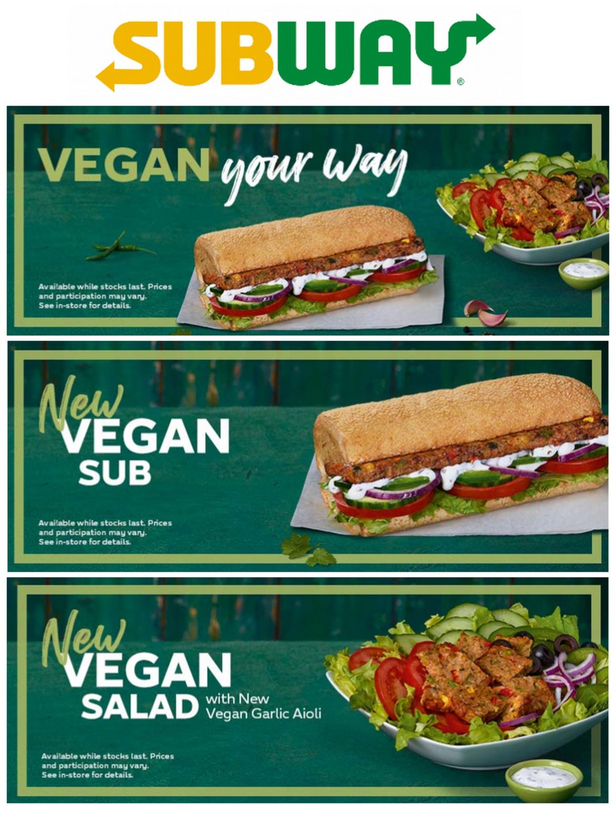 Subway Vegan Offers Menu For April 1