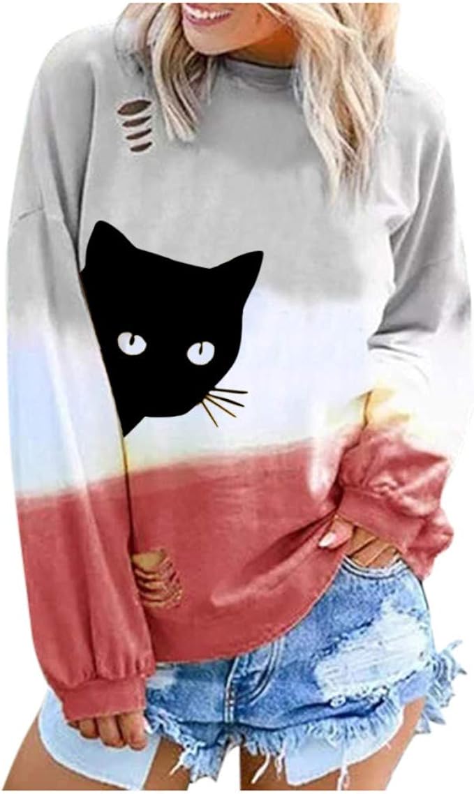 Lopily Damen Oberteile Tie Dye Sweatshirts Damen Zerrissene Pullover Mit Katze Muster Farbverlauf Hoodies Damen Herbst Tunika Damen Elegant Lang Pullover Weihnachten Damen Warme Pulli Amazon De Bekleidung
