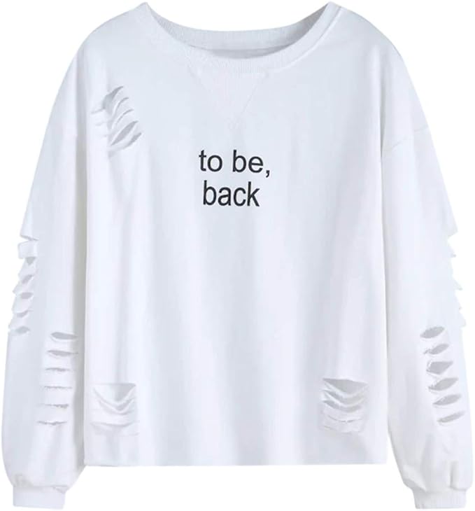 Salucia Pullover Zerrissene Damen Rundhals Langarm Sweatshirt Casual Lose Spruch Drucken Oberteile Shirts Langarmshirt Tops Blusenshirt Weiss Amazon De Bekleidung