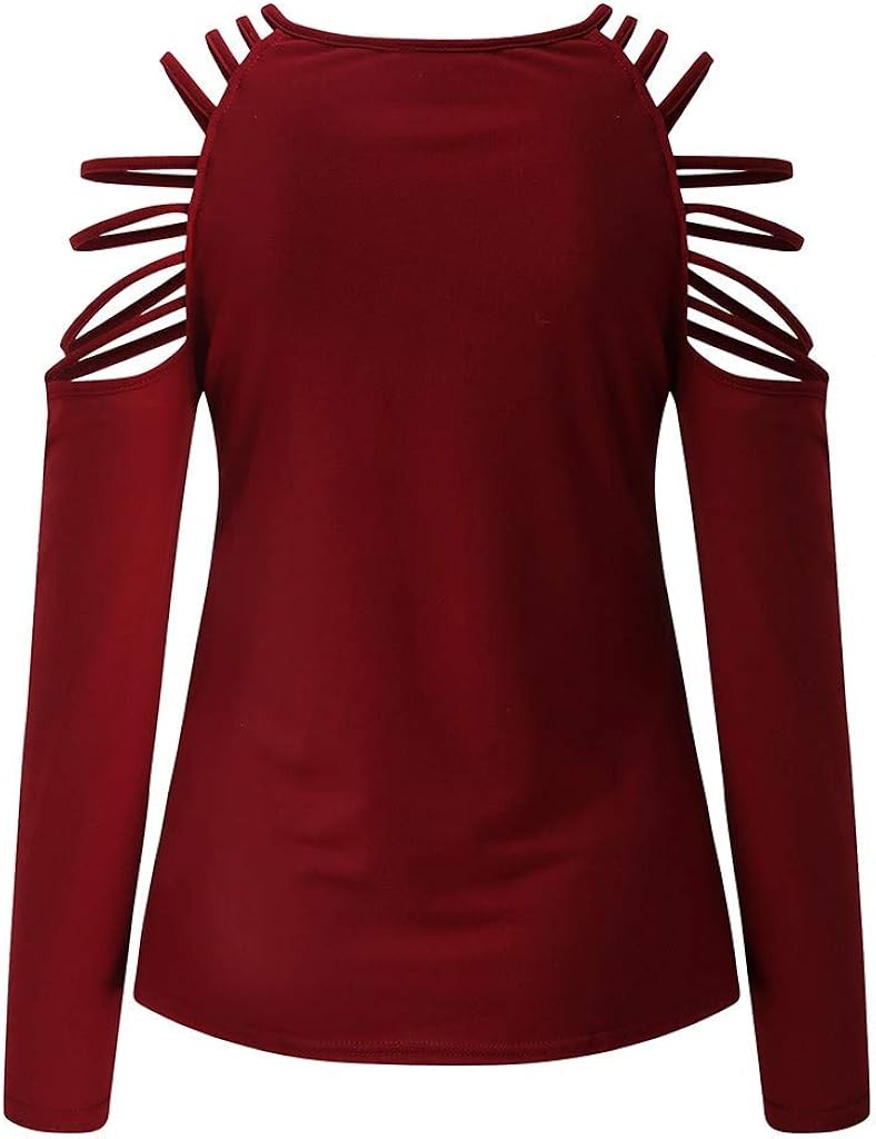 Xiangdanful Damen Langarmshirt Sweatshirt Hollow Out Oberteile Bluse Gothict Shirt Einfarbig Oversize Pullover Cut Out Tuniken Jumper Zerrissene Armel Ripped Schulterfrei Bodycon Bekleidung Damen