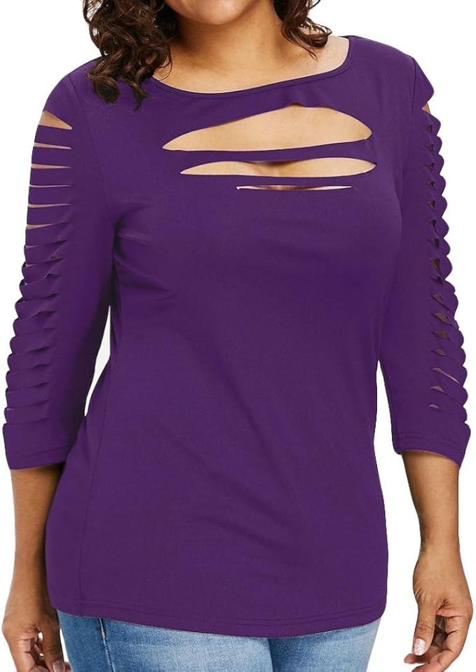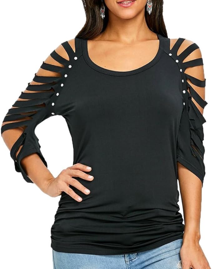 Tuduz Damen Elegant Aushohlen Sicke O Ausschnitt Ausgeschnitten Zerrissene Armel T Shirt Tops Oberteile Amazon De Bekleidung