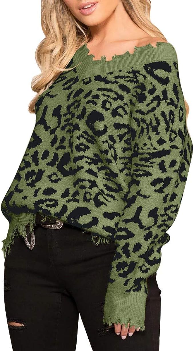 Salucia Damen Leopard Druck Zerrissene V Ausschnitt Langarm Strick Pullover Sweater Frauen Herbst Winter Mode Lassige Lose Fit Pulli Jumper Shirt Bluse Langarmshirt Oberteile Top Streetwear Amazon De Bekleidung