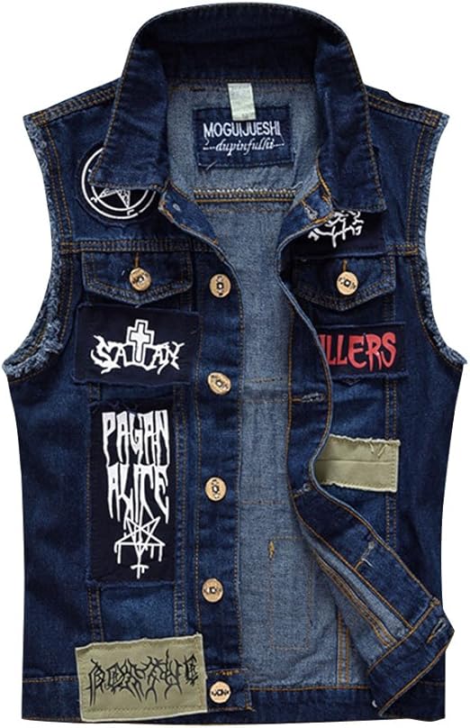 Shifan Herren Beilaufige Weste Patch Armellose Denim Weste Jeansweste Jeansjacke Zerrissen Oberteile Jacket Amazon De Bekleidung