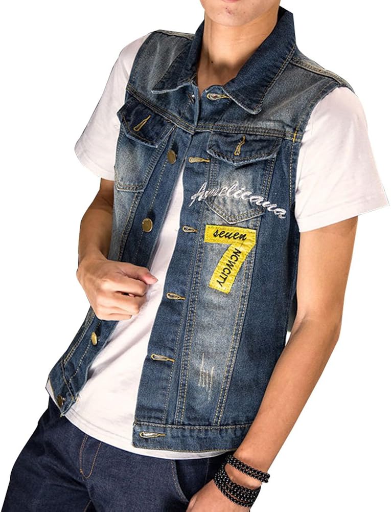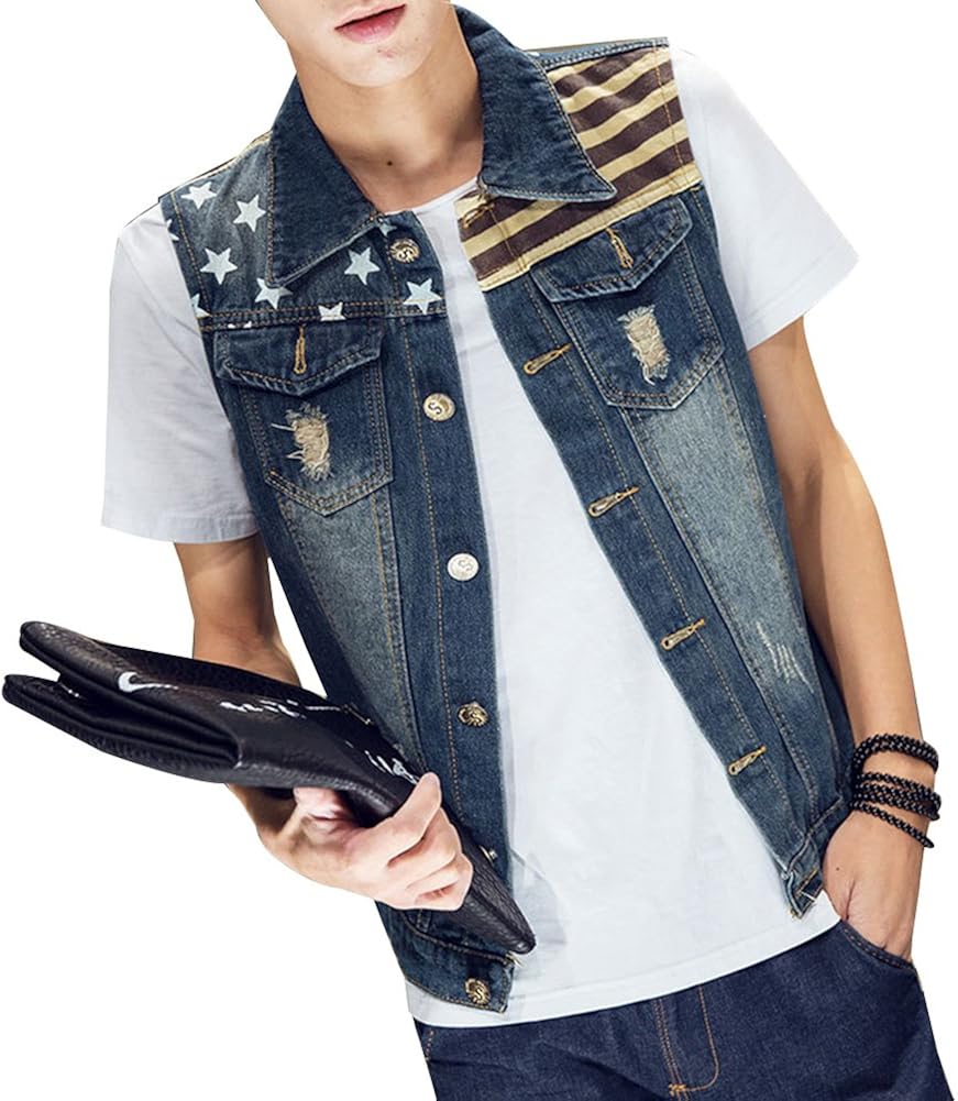 Laozan Herren Beilaufige Weste Denim Weste Cowboy Jacke Jeansweste Jeansjacke Zerrissen Oberteile Jacket