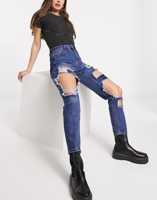 I Saw It First Zerrissene Mom Jeans In Dunkelblau Evesham Nj