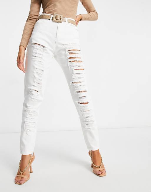Naanaa Zerrissene Mom Jeans Mit Hohem Bund In Weiss Evesham Nj