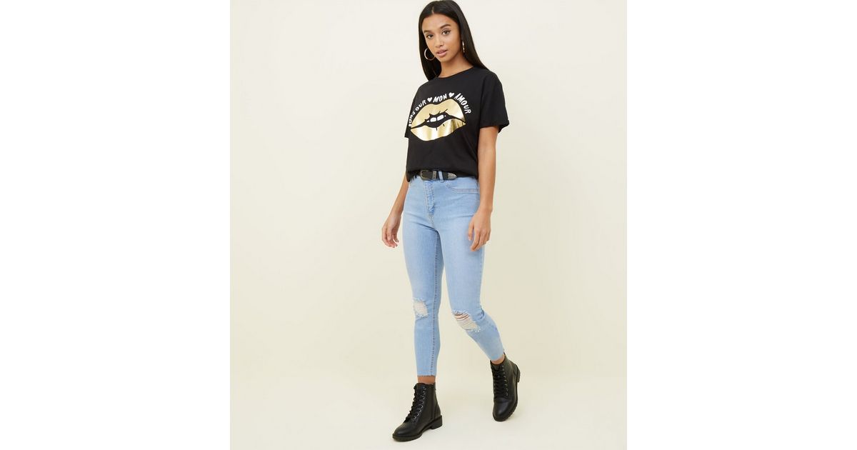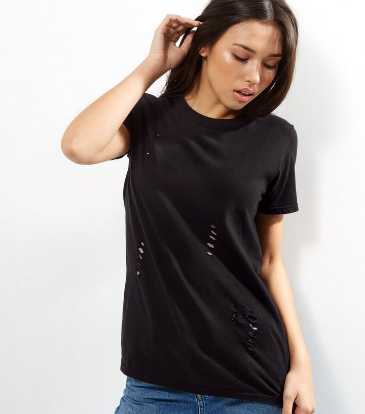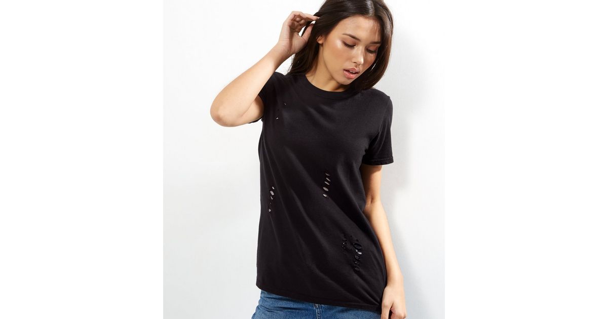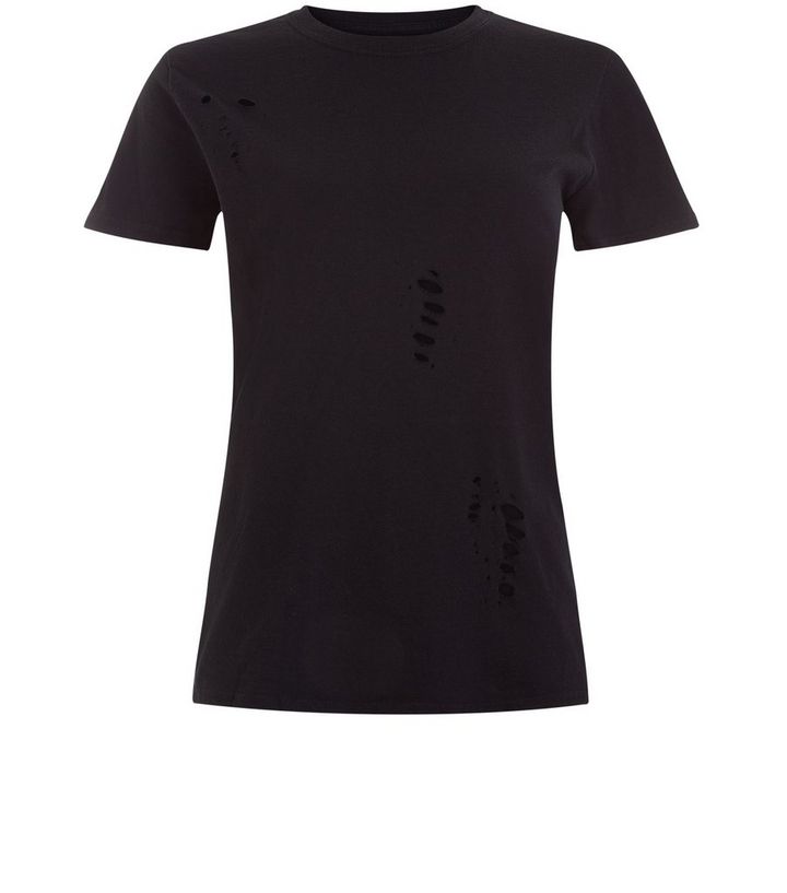 Schwarzes Zerrissenes T Shirt Mit Kurzen Armeln New Look