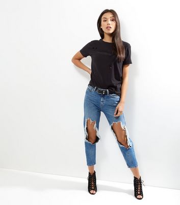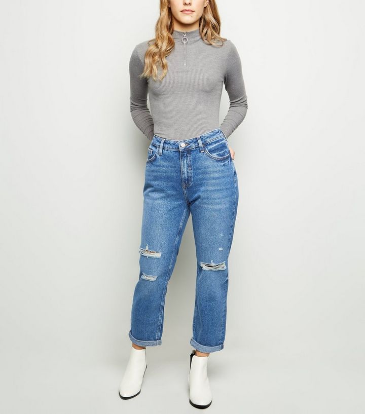 Petite Blaue Zerrissene Boyfriend Jeans New Look