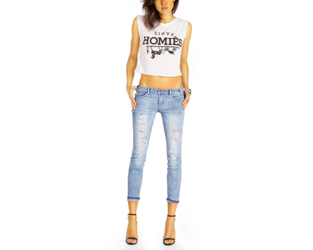 Be Styled Destroyed Jeans Damen Mit Flicken Zerrissene Used Optik Rohriger Skinny Slim Schnitt Uma J04i