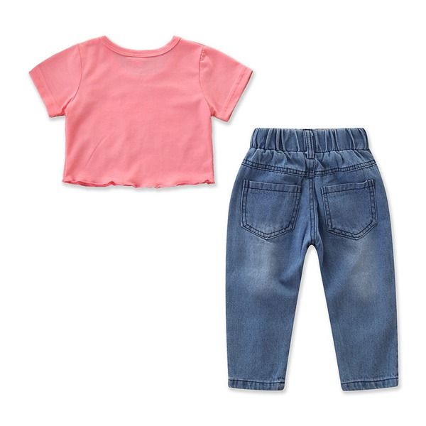 Grosshandel 19 Sommer Kinder Outfits Mode Madchen Boutique Kleidung Kinderkleidung Baby Madchen Rosa Oberteile T Shirts Zerrissene Jeans Denim Hosen 2 Stucke Satze Von Kids Boutique 8 62 Auf De Dhgate Com Dhgate