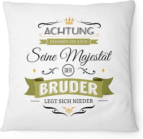 Amazon De Fashionalarm Kissen Seine Majestat Der Bruder 40x40 Cm Mit Fullung Lustige Geschenk Idee Fur Geschwister Geburtstag Geburt Kind Baby Spruch Farbe Weiss