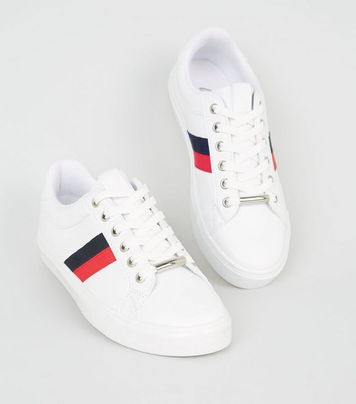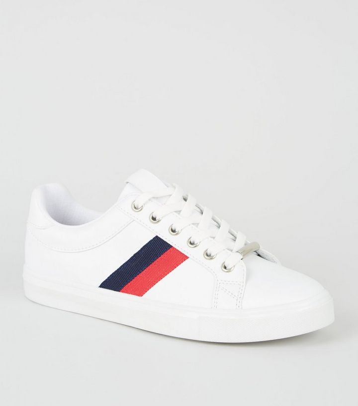 Weisse Turnschuhe In Leder Optik Mit Seitenstreifen New Look