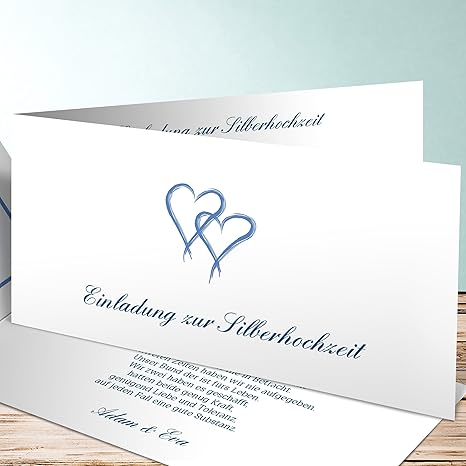 Größe Ca 15 * 15 * 05cm/5. Einladungskarten silberne Hochzeit Einfach aus unseren Vorlagen online direkt selber gestalten Dafür ist keine Software nötig Große Auswahl Herausragende Qualität, 100% Kundenfokusierung, Zahlung auf Rechnung, Begeisterte Kunden!. Jede Karte braucht eine Einleitung – am besten mit ein paar persönlichen Informationen Danach kommen die Fakten zur Feier eurer Silberhochzeit Als Abrundung einer schönen Karte zur Silberhochzeit sucht ihr euch zum Schluss noch einen unserer SilberhochzeitSprüche aus.