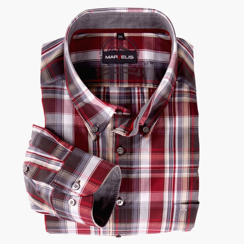 Marvelis Langarmhemd Grau Rot Kariert Ubergrosse Bigtex