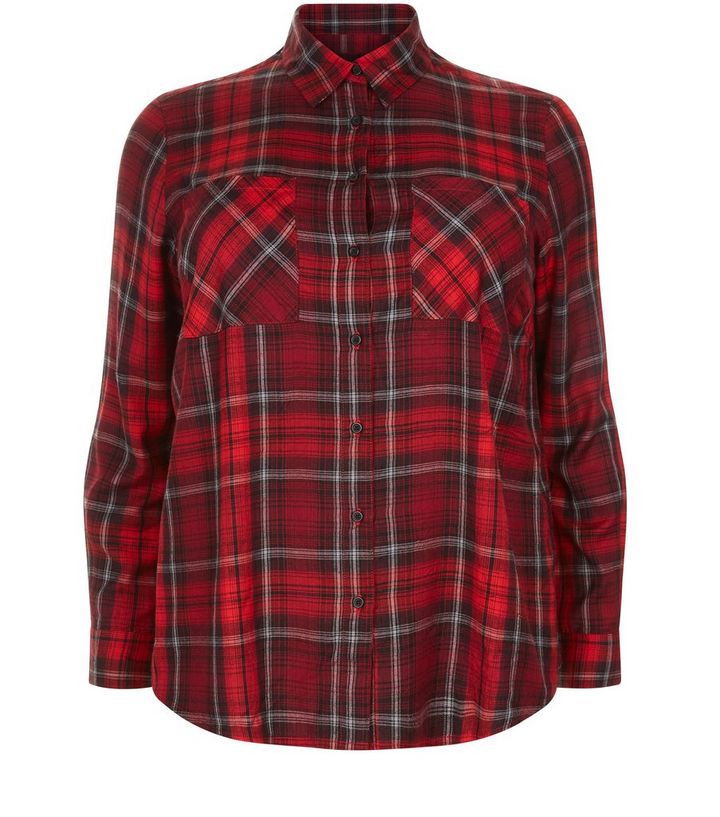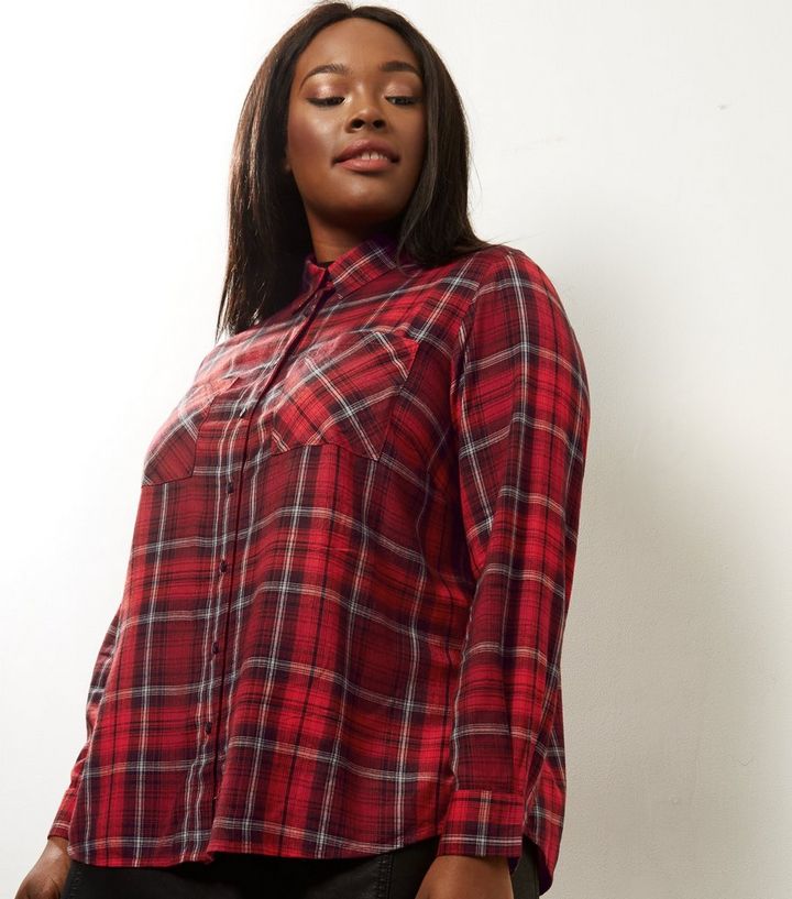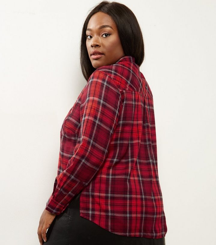 Curves Rotes Karohemd Mit Verkurzter Lange New Look