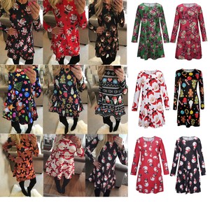 Damen Frauen Weihnachten Kleid Langarm Santa Claus Print Weihnachtsfeier Kleid Eur 12 99 Picclick De