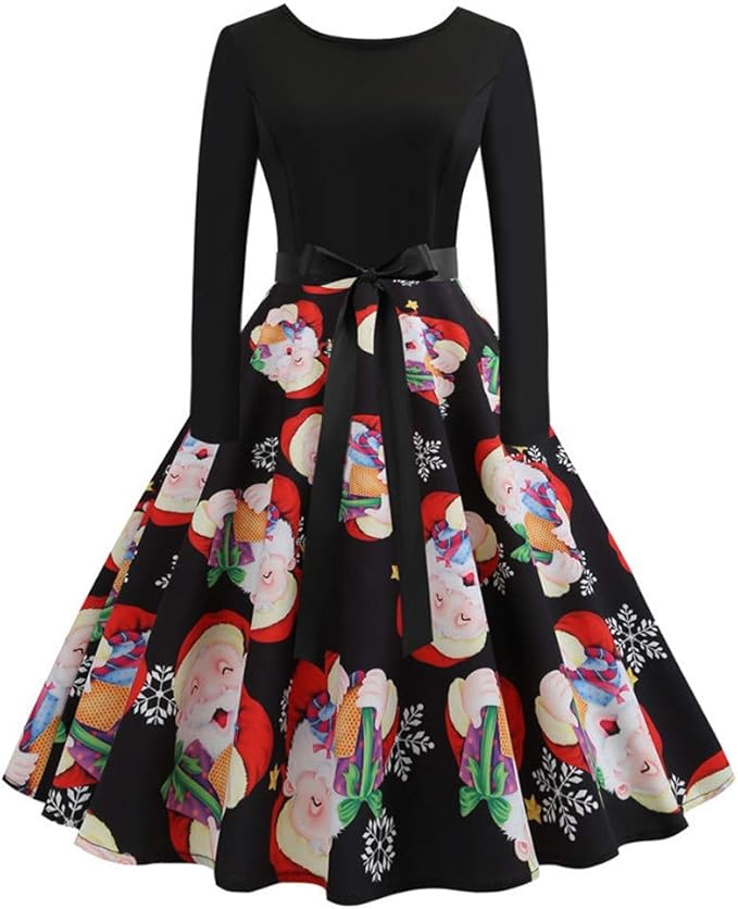 Whshine Damen Plus Size Kleid Weihnachtsfeier Kleid Vintage Swing Skaterkleid Weihnachtskleid Langarm Weihnachtskleid Skater Kleid Modische Kleider Fur Frauen