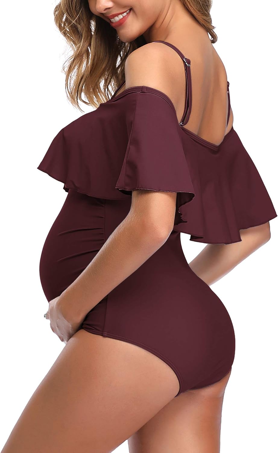 Summer Mae Schwangerschafts Badeanzug Volant Umstandsbademode V Ausschnitt Schwanger Badezug Amazon De Bekleidung