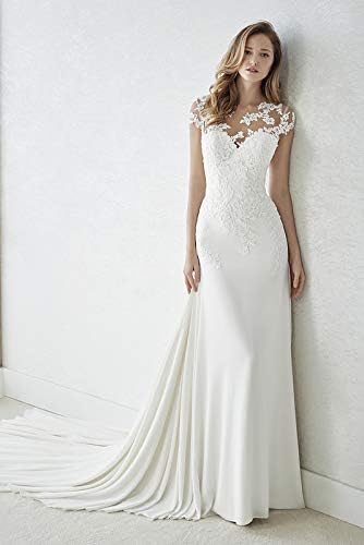 Zapaka Damen Kurzes Weiss Scharpe Rundhals Spitzenkleid Standesamtkleid Mit 3 4 Armeln Zapaka De